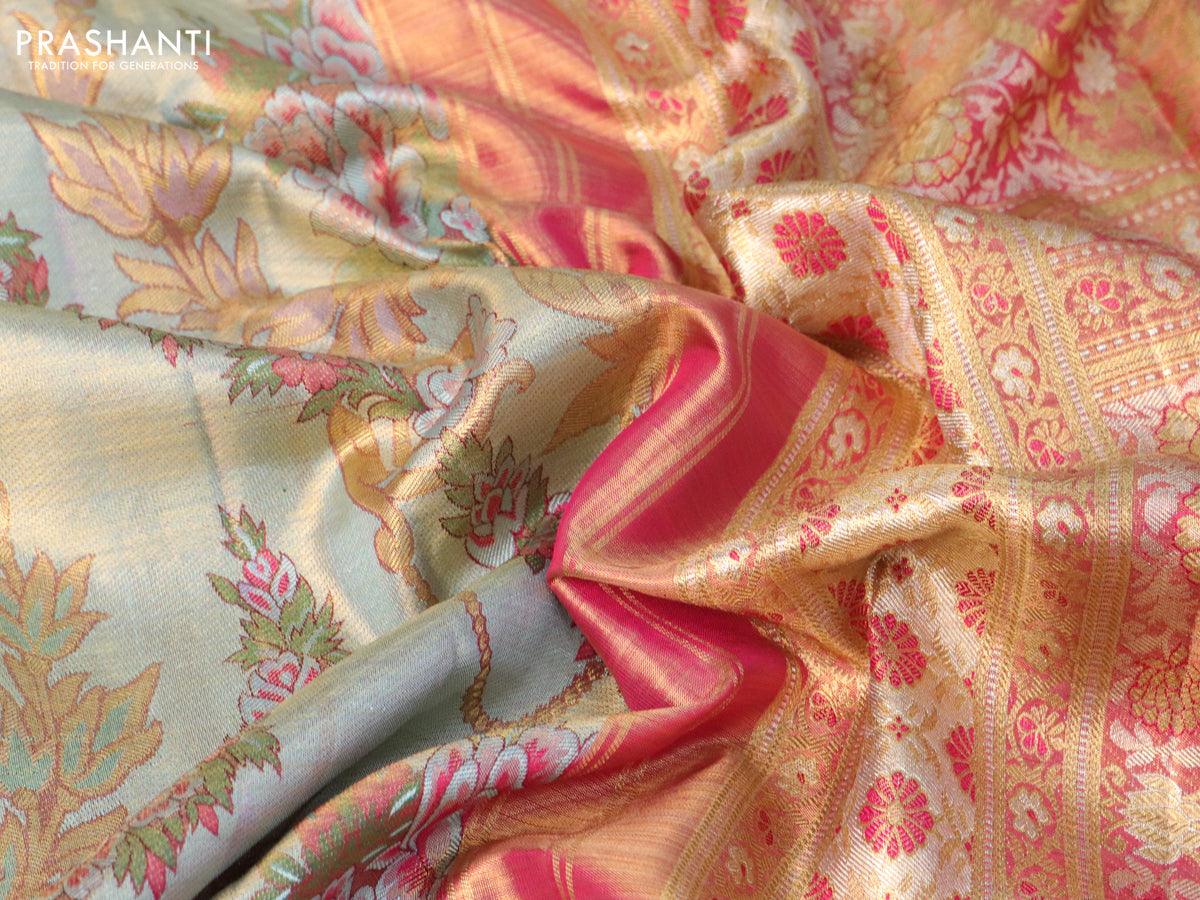 Pure kanjivaram tissue silk saree pastel blue and pink with allover thread & zari floral brocade weaves and rich zari woven border