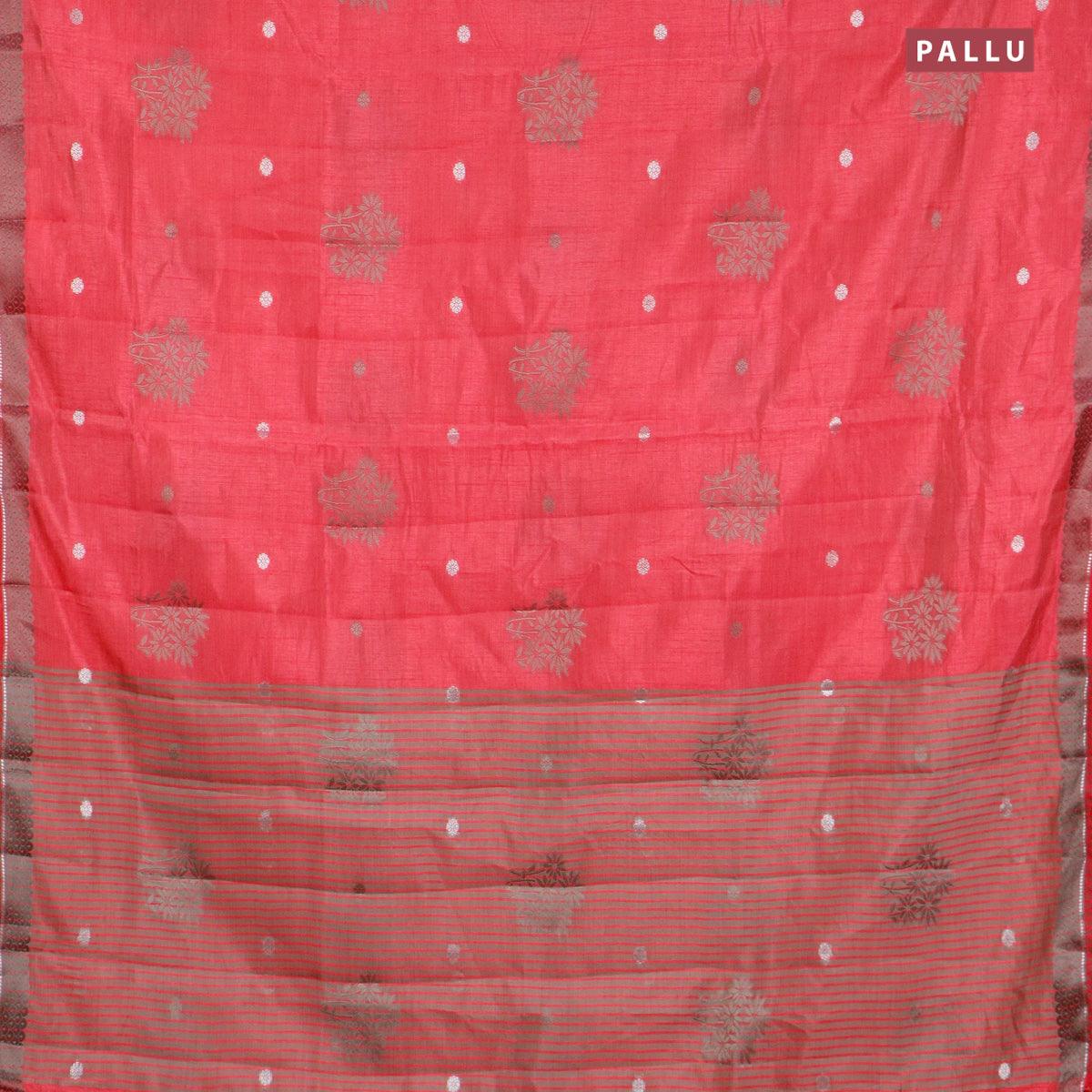 Semi raw silk saree pink with thread & silver zari woven buttas and woven border